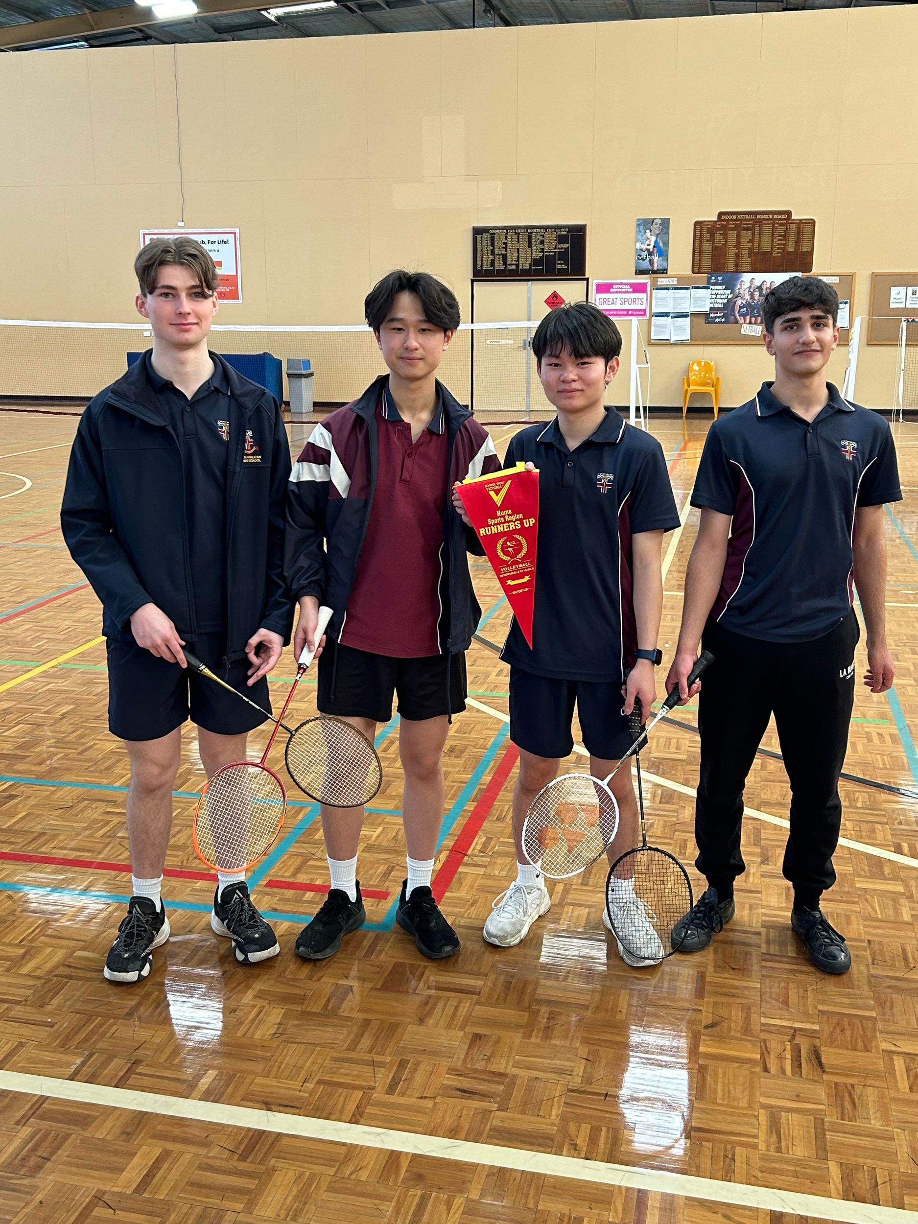 In Term Three our superstar senior badminton squad hit the road to Albury to compete in the Hume Region Championships. Our senior girls' team, consisting of Year 12 students Cadence Pang, Caitlin Welch, Emily Orsida, and Natasha Smith put in a stellar display, only dropping one set for the entire tournament on their way to the title!